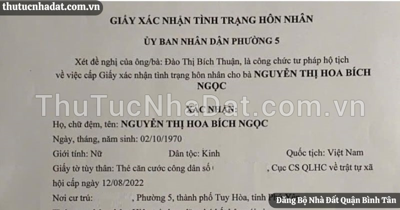 Giấy xác nhận tình trạng hôn nhân đối với bên chuyển nhượng nếu người đứng tên trên sổ hồng,sổ đỏ còn là độc thân hoặc tài sản hình thành trước hôn nhân (mua bán).