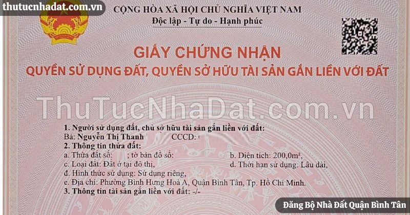 - QUY TRÌNH ĐĂNG BỘ NHÀ ĐẤT QUẬN BÌNH TÂN