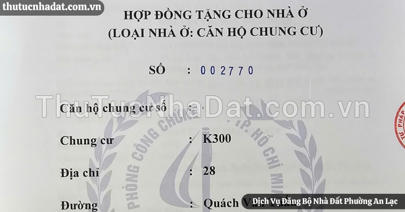 Phường An Lạc là khu vực cửa ngõ phía Tây của TP Hồ Chí Minh, tiếp giáp quận 6 và Bình Chánh, là nơi tập trung nhiều khu dân cư lớn như Ehome 3, Aeon Mall Bình Tân và khu đô thị Tên Lửa. Nhu cầu giao dịch nhà đất tại đây tăng mạnh trong vài năm gần đây, đặc biệt là các hồ sơ mua bán và tặng cho nhà phố, căn hộ, đất nền tái định cư.