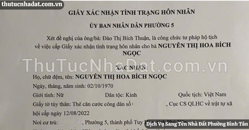 - Căn cước công dân, giấy đăng ký kết hôn hoặc xác nhận độc thân.