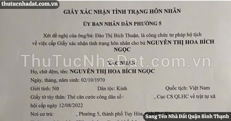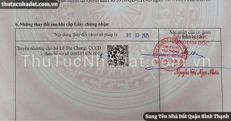 8. TRƯỜNG HỢP SANG TÊN THỰC TẾ TẠI QUẬN BÌNH THẠNH